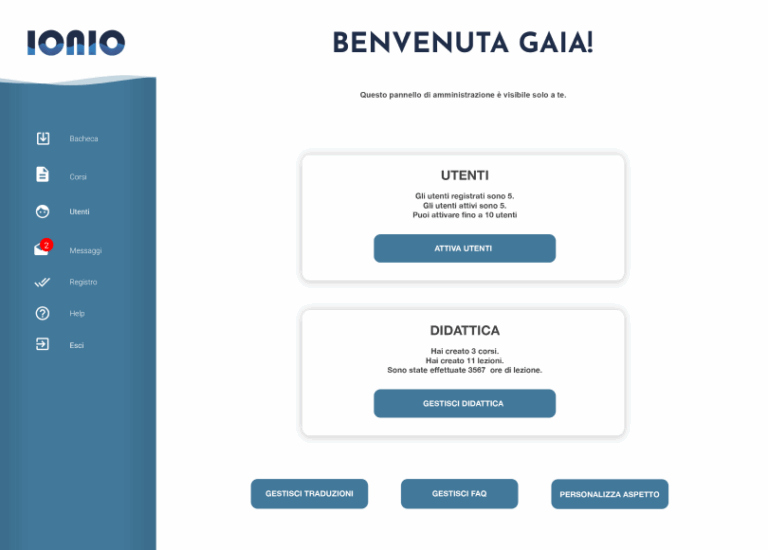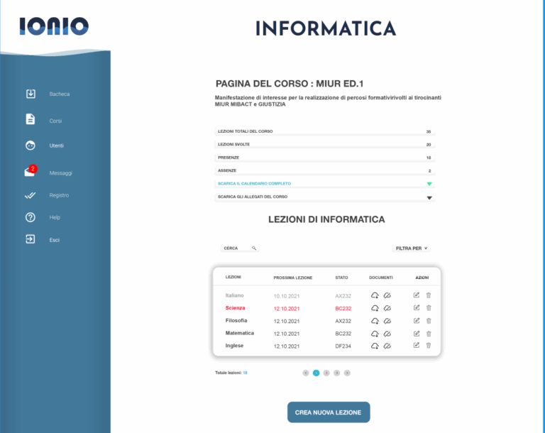 Ionio è la piattaforma di e-learning progettata per un ente di formazione attivo nel campo dell’educazione continua e della formazione professionale. L’obiettivo del progetto era creare uno strumento digitale moderno, funzionale e intuitivo a supporto di un’offerta didattica online di alto livello. Il cliente ha una forte vocazione sociale e culturale, con particolare attenzione alla qualità dei percorsi formativi e all’accessibilità per studenti e lavoratori.