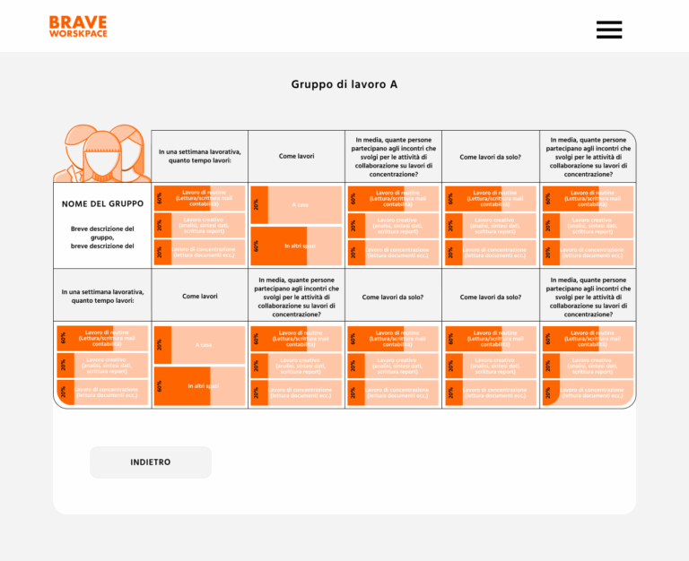 Brave Work Space Tool è un progetto realizzato per un gruppo di ricerca del Politecnico di Milano, all’interno del Dipartimento di Architettura, Ingegneria delle Costruzioni e Ambiente Costruito. Collaborare con un’istituzione di eccellenza come il Politecnico è stato stimolante e ci ha permesso di contribuire allo sviluppo di uno strumento utile e innovativo per la progettazione degli spazi di lavoro.